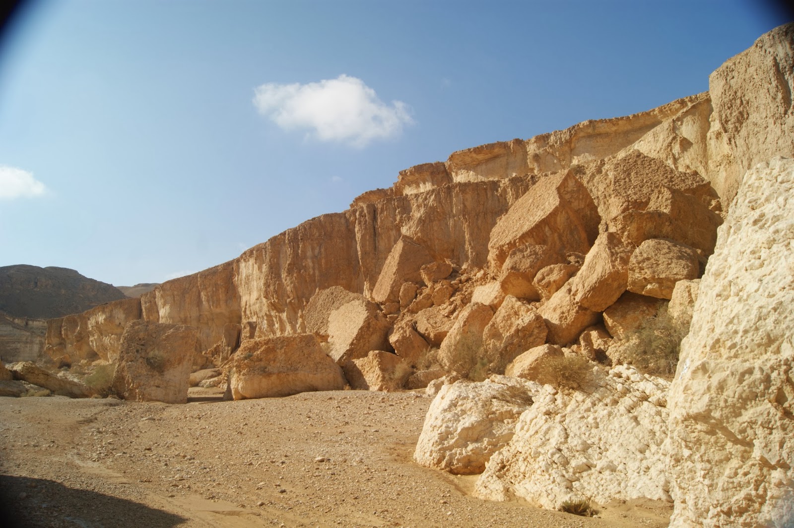 Wadi Nekarot runs along the southeastern part of the Makhtesh. Its horseshoe canyon has some caves and is in general very scenic; it actually had some water flowing through it this time.